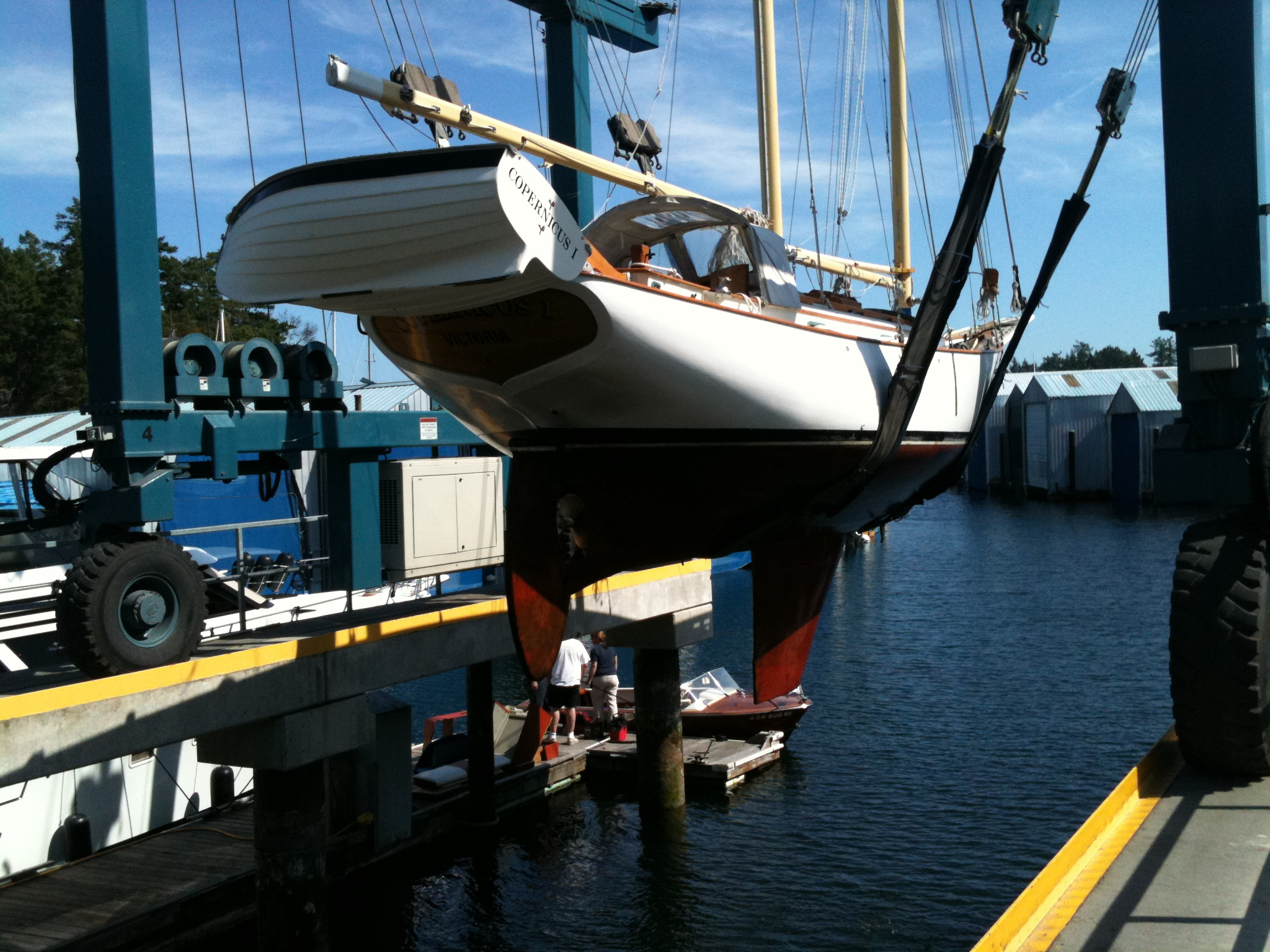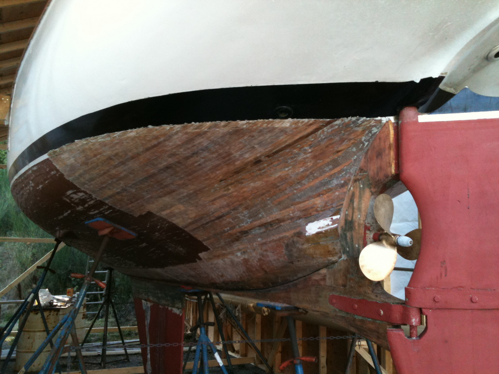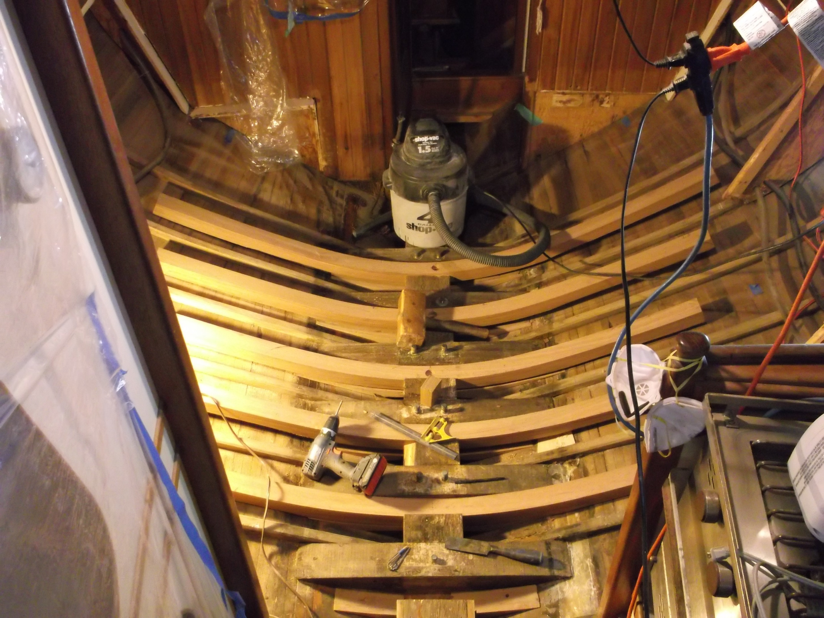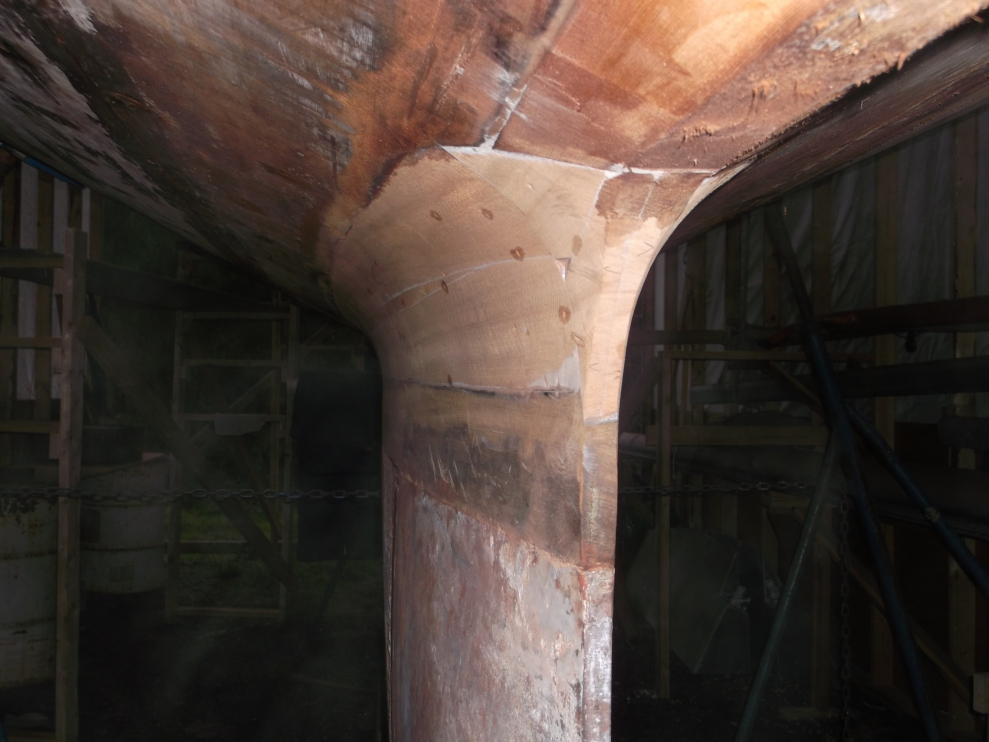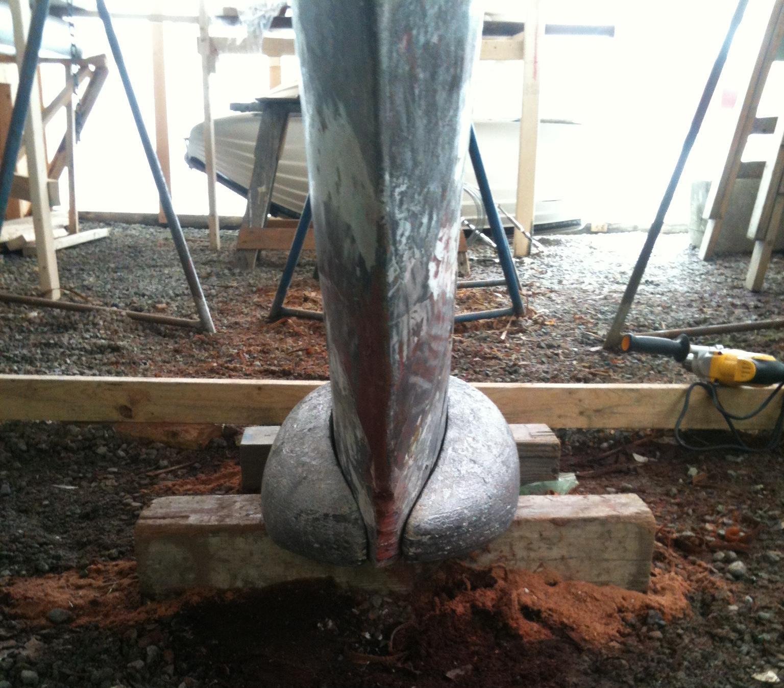 Copernicus had some problems that, if not addressed, would send the boat into fast decline. The most serious issue was the keel-hull transition where the floor timbers were too short to give the structure enough support. Byron had a grounding and opened a crack where the hull meets the floor timbers on the starboard side and I did the same on the port side. That made the the ocean trickle inside on either tack, and with no bilge to speak of, even a small amount of water would run up the sides and wet everything in the lockers when the boat heels. That brings us to the other issue: excessive heeling. Byron recognized that problem and added some lead to the bottom of the keel increasing the drought by about 20 inches. That was not enough to ameliorate the problem , so in 2011 I have decided to save my beautiful boat, make her stronger and safer. With the help from Eric Jespersen and his crew of very skilled shipwrights and the guys from Blackline Marine Services from Canoe Cove Marina in Sidney, British Columbia I embarked on a 23 month project to accomplish that.