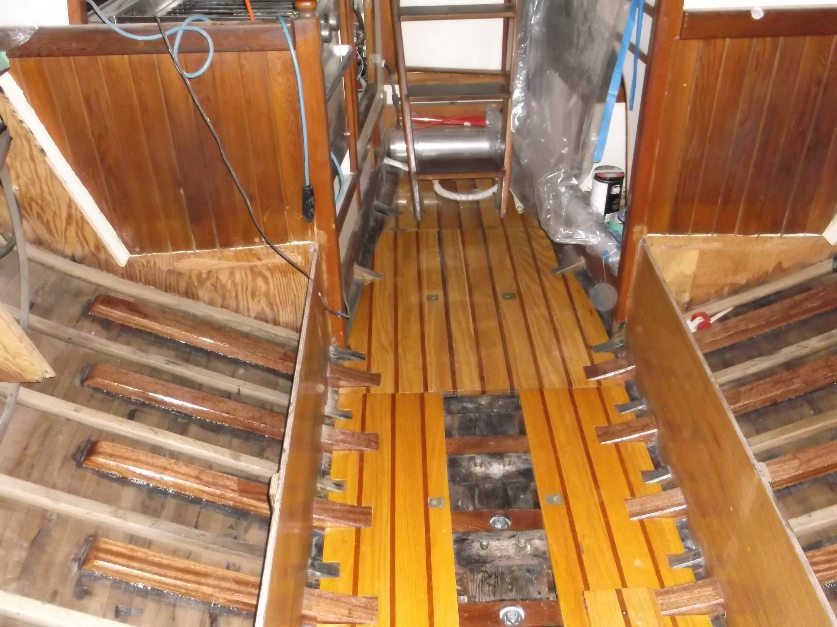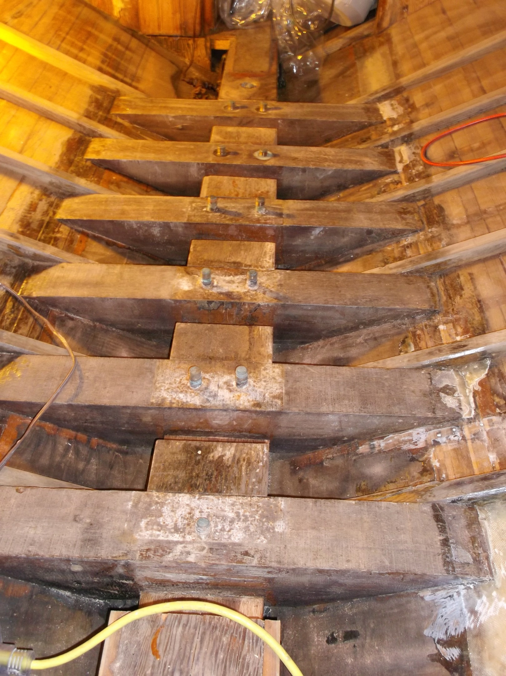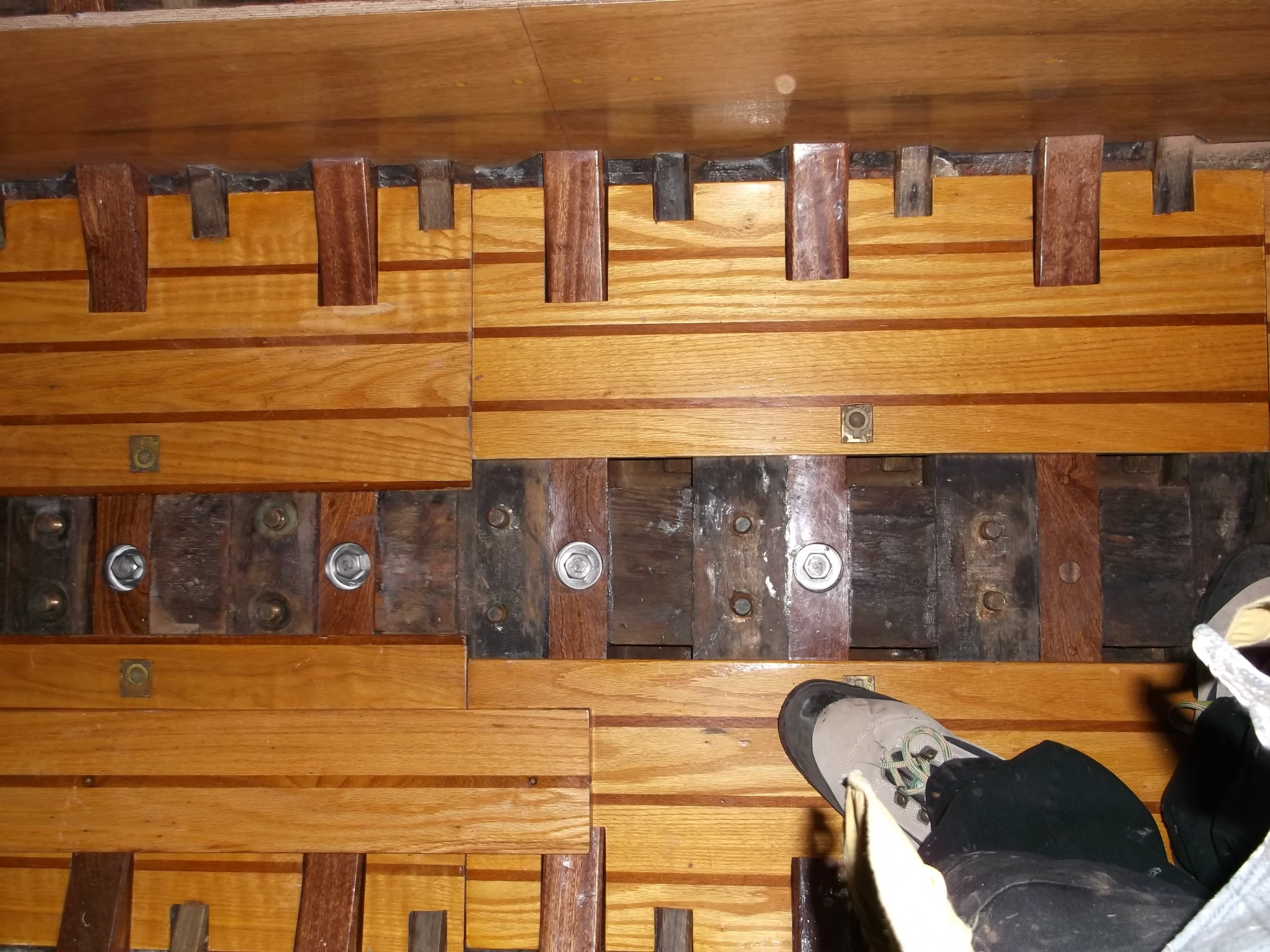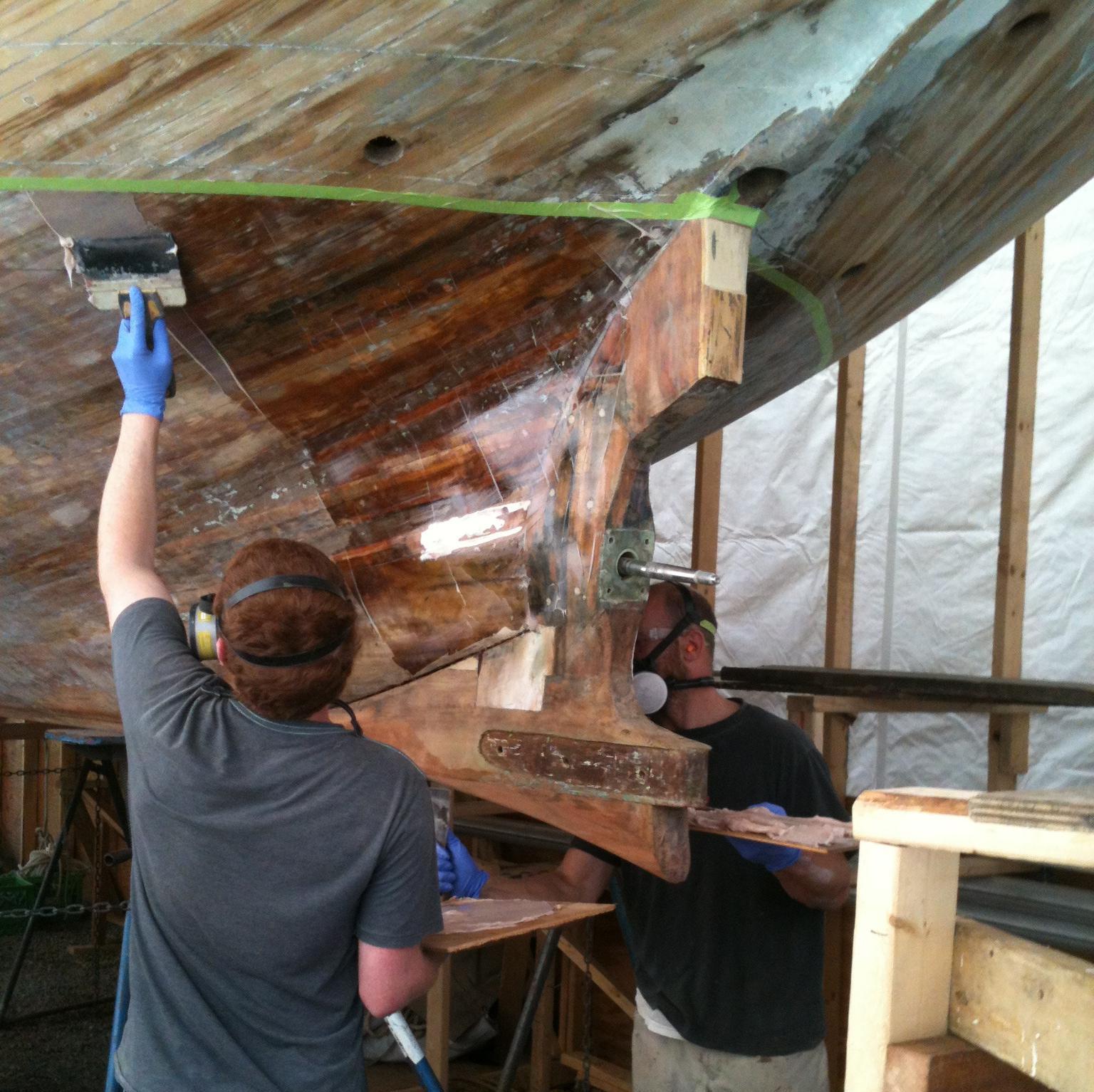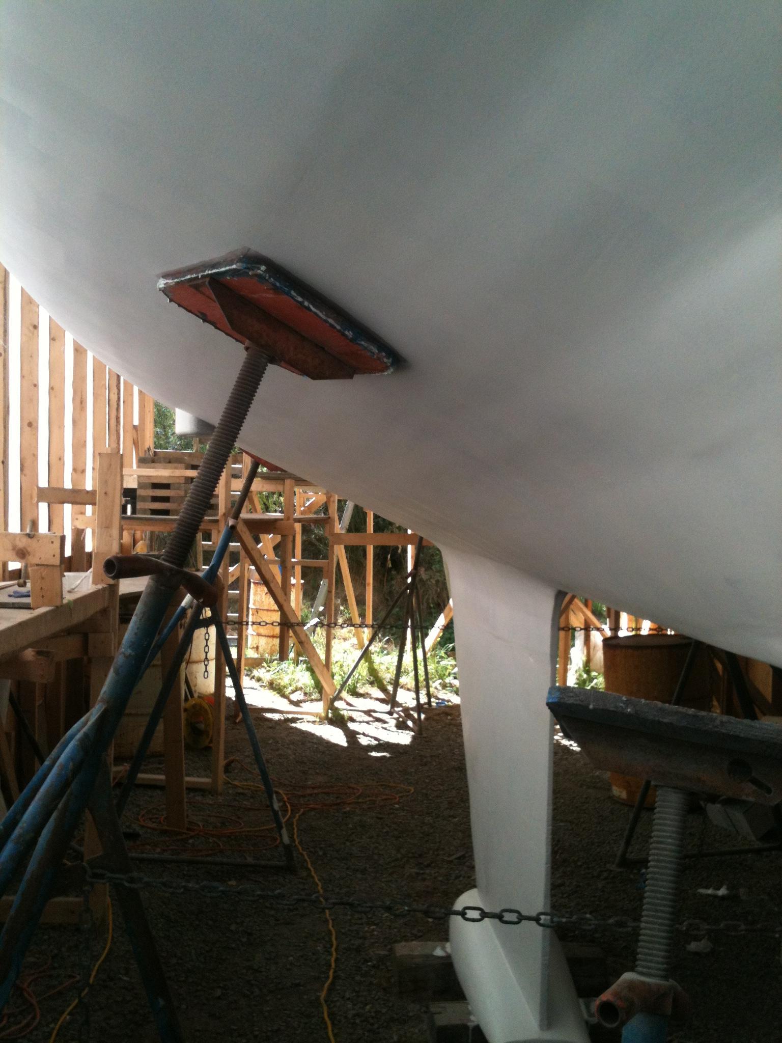 Copernicus had some problems that, if not addressed, would send the boat into fast decline. The most serious issue was the keel-hull transition where the floor timbers were too short to give the structure enough support. Byron had a grounding and opened a crack where the hull meets the floor timbers on the starboard side and I did the same on the port side. That made the the ocean trickle inside on either tack, and with no bilge to speak of, even a small amount of water would run up the sides and wet everything in the lockers when the boat heels. That brings us to the other issue: excessive heeling. Byron recognized that problem and added some lead to the bottom of the keel increasing the drought by about 20 inches. That was not enough to ameliorate the problem , so in 2011 I have decided to save my beautiful boat, make her stronger and safer. With the help from Eric Jespersen and his crew of very skilled shipwrights and the guys from Blackline Marine Services from Canoe Cove Marina in Sidney, British Columbia I embarked on a 23 month project to accomplish that.